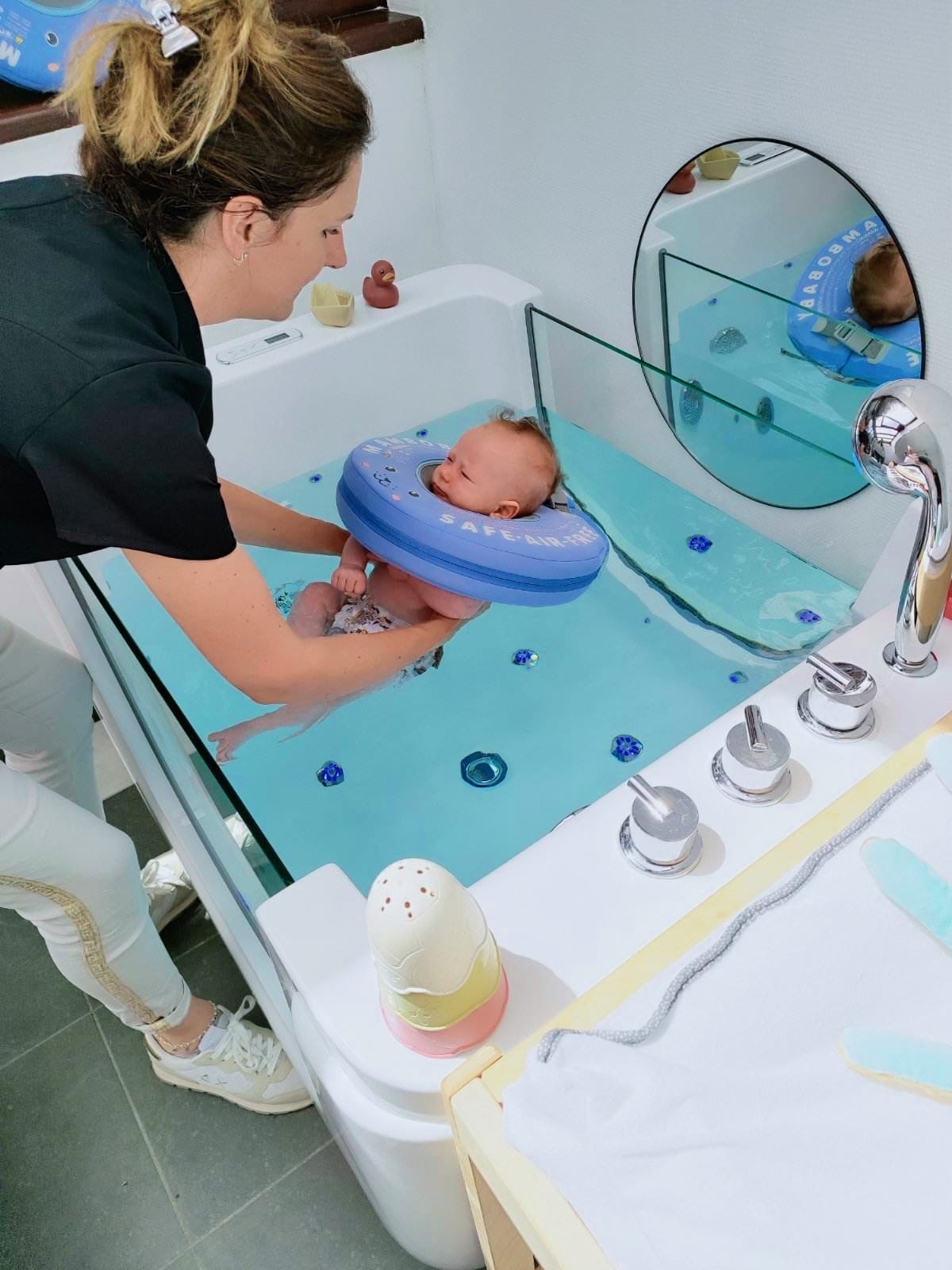 “Deuxième fois que notre petite se détend au rythme de l’eau dans cet agréable cadre de bien-être, séance spa et massage. Très chouette.”